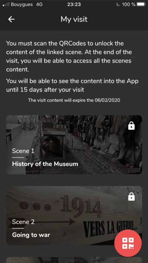 Completely free, the Somme 1916 Museum mobile application can be used without any internet connection. Install it at home to get practical information then once in the museum, she will be your guide throughout the 250 meters of the underground thanks to the 30 QR codes positioned in the visit route. Scan them using the Somme 1916 Museum app to obtain more information on the content.