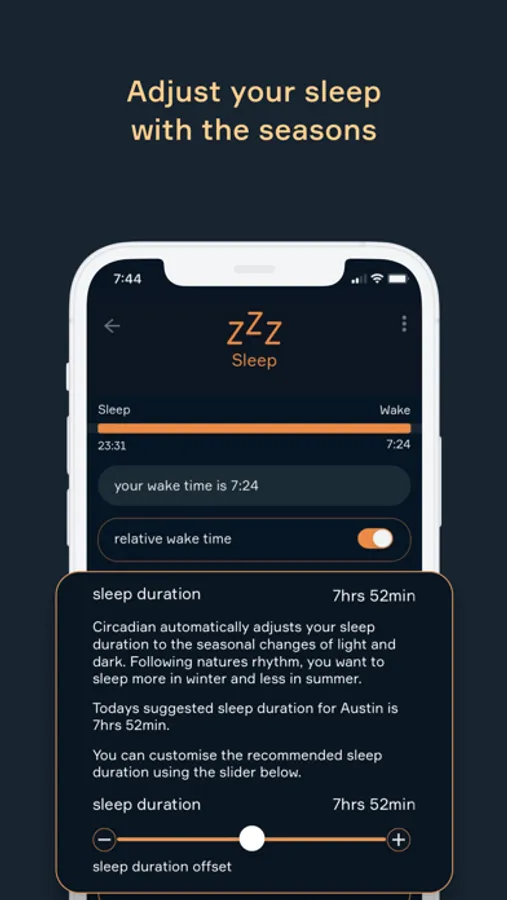 Circadian rhythms govern daily functioning, whereas seasonal rhythms, also referred to as infradian rhythms, affect longer-term behavioural and metabolic changes. Circadian can adjust your sleep duration dynamically based on the changing light conditions at your location. This keeps your bodies biorhythm in sync with seasonal changes.