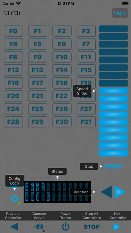 Up to 3 locomotives are currently supported at the same time. The app is primarily designed as a mobile locomotive controller. Speed and the functions of locomotives can be used.
