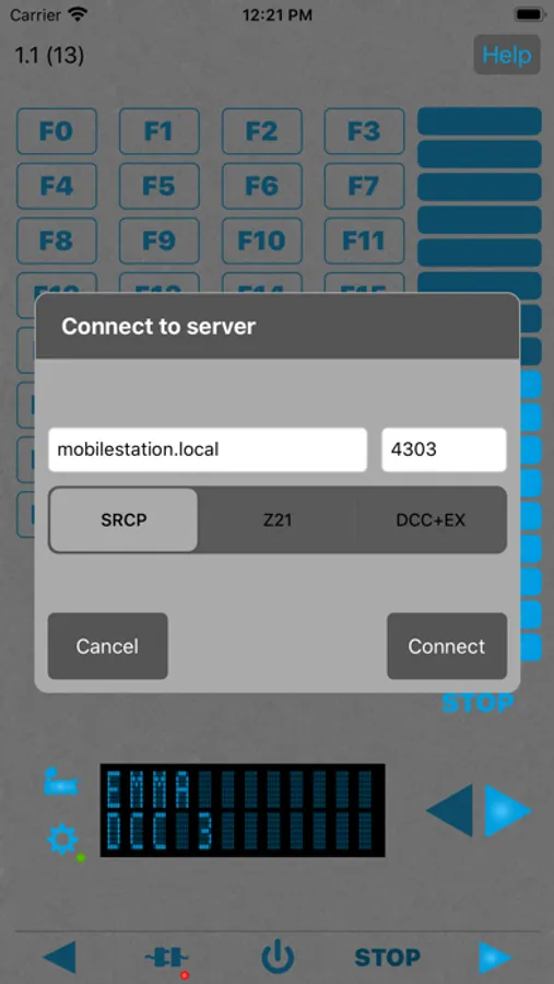 The SRCP client for iOS can primarily connect to control centrals supporting the SCRP protocol. As a special feature, the SRCP client also supports the Z21 protocol and the WiThrottle protocol as used e.g. DCC++EX, even if these two protocols are not SRCP protocols.