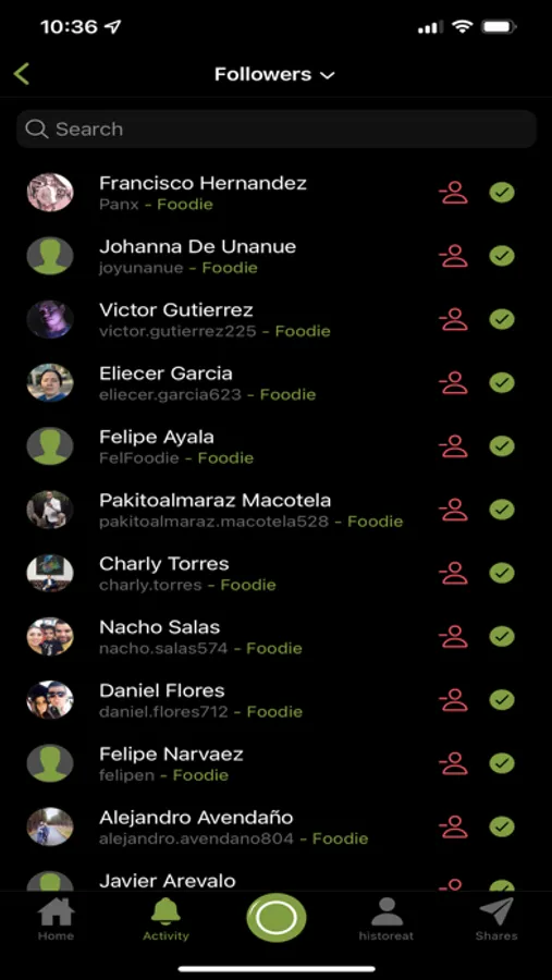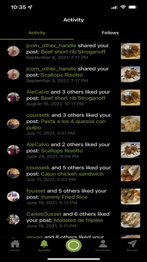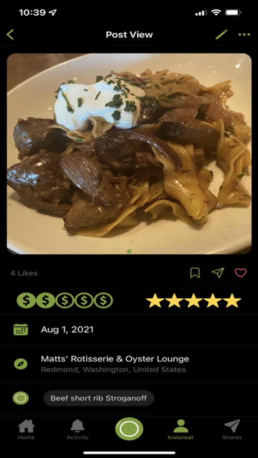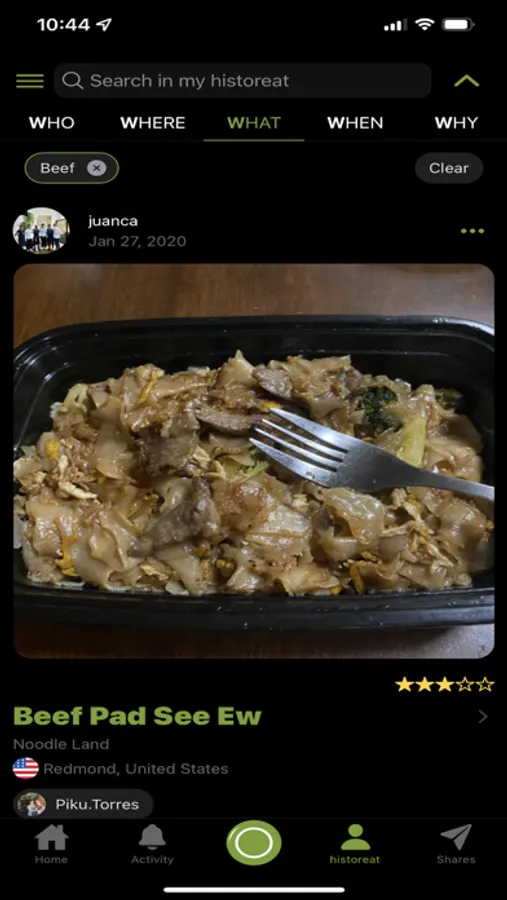 - Discover: quickly see what people in your historeat network are having to eat and determine how much they liked it.
