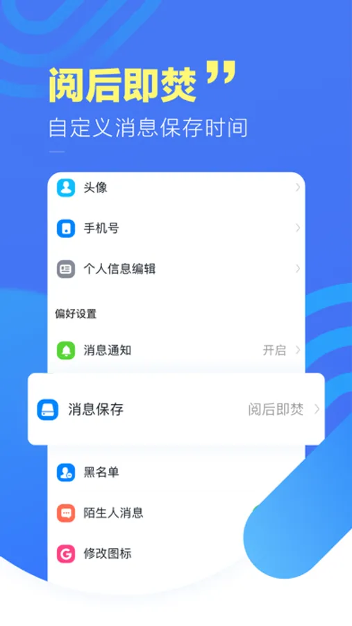 消息已读后会自动销毁,没有任何记录,保护隐私