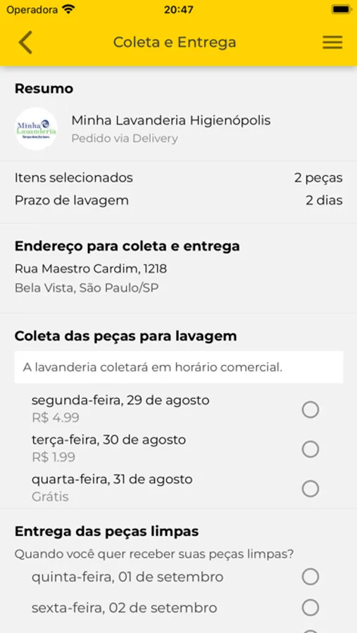 Você não precisa mais ir na lavanderia, nem ligar ou trocar inúmeras mensagens de texto. Baixe o aplicativo, escolha a lavanderia, as peças que quer lavar e pronto!