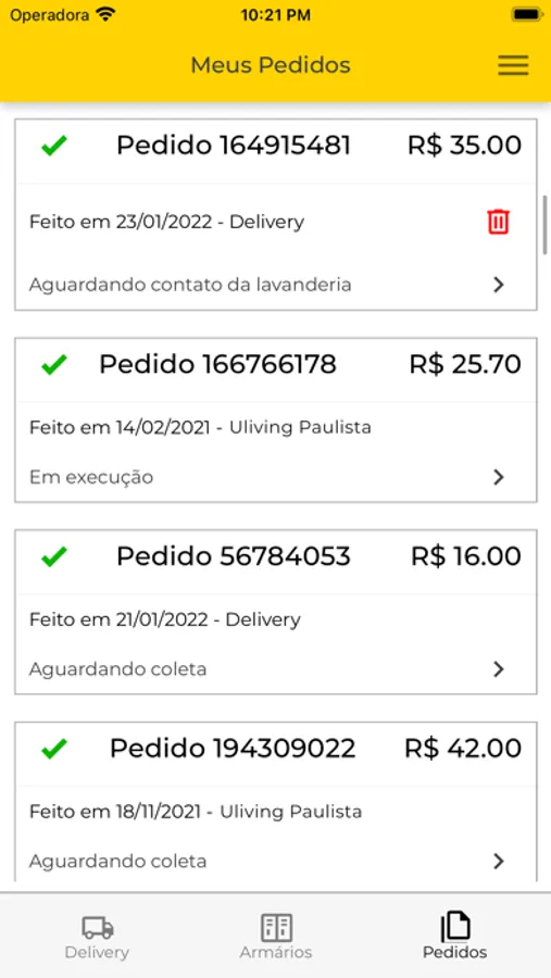 Monitore seu pedido em tempo real, pague a agende a entrega pelo app. Todos os dias e 24 horas.