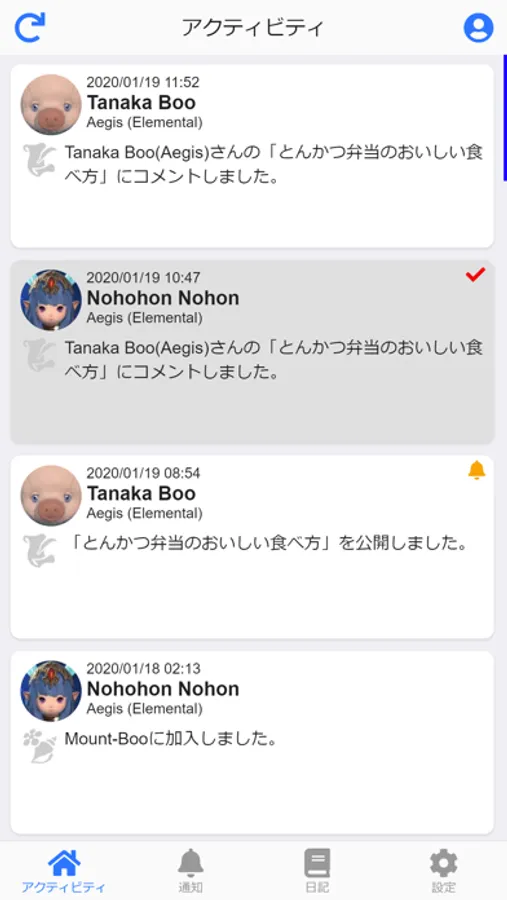 From the large number of activities displayed on the LodeStone wall, only activities that you want to be sure to check (such as posting a friend's diary or posting a comment) will be announced.
