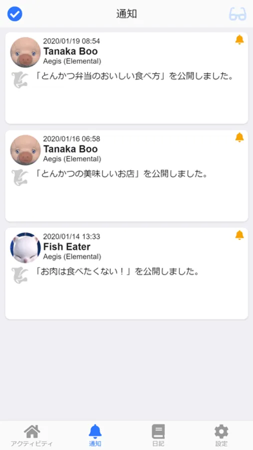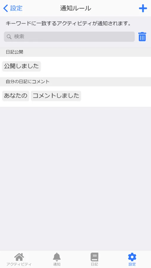 By setting notification rules such as diary publication and comment posting, activities that match the rules are extracted and notified.