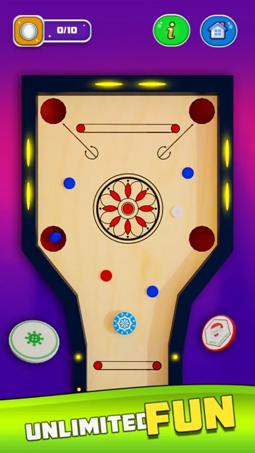 The best Real Carrom board 3D game is here! This Mini Carrom Board King of Pool Games has addictive fun carrom game. This carrom board has 9 white, 9 black and 1 red queen carrom choose your strike and pocket the carrom to win the match. Remember queen is the most important coin in the game it is worth 3 points alone. However, in order to bag the queen, you must give her a cover as well. This means that you must pocket one coin immediately after pocketing the queen.