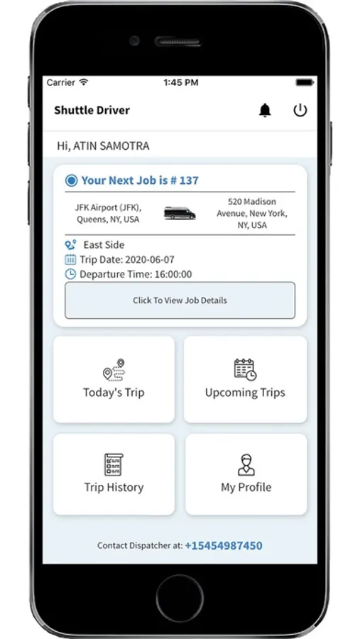 - All upcoming trips dispatched to the driver along with details.