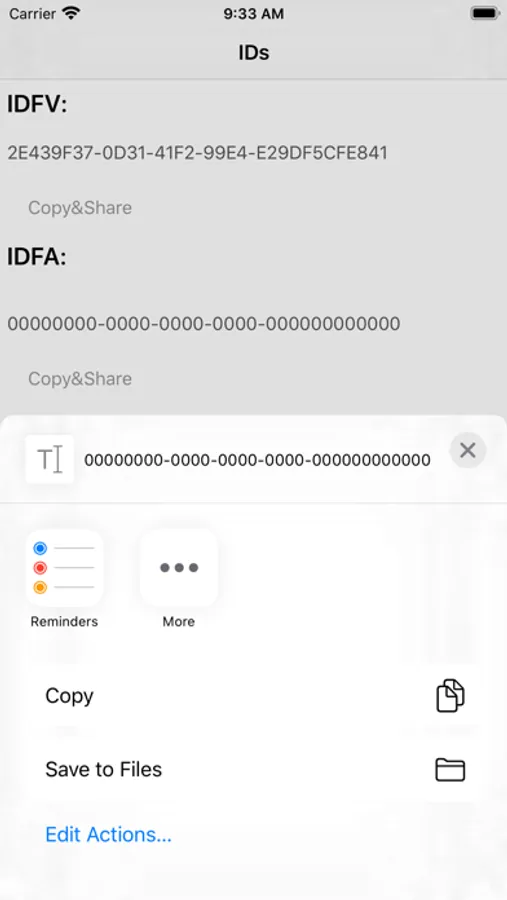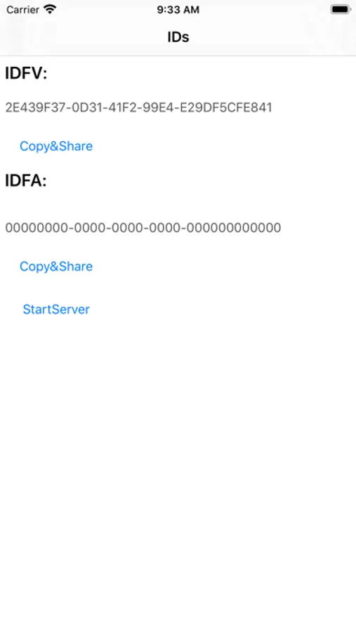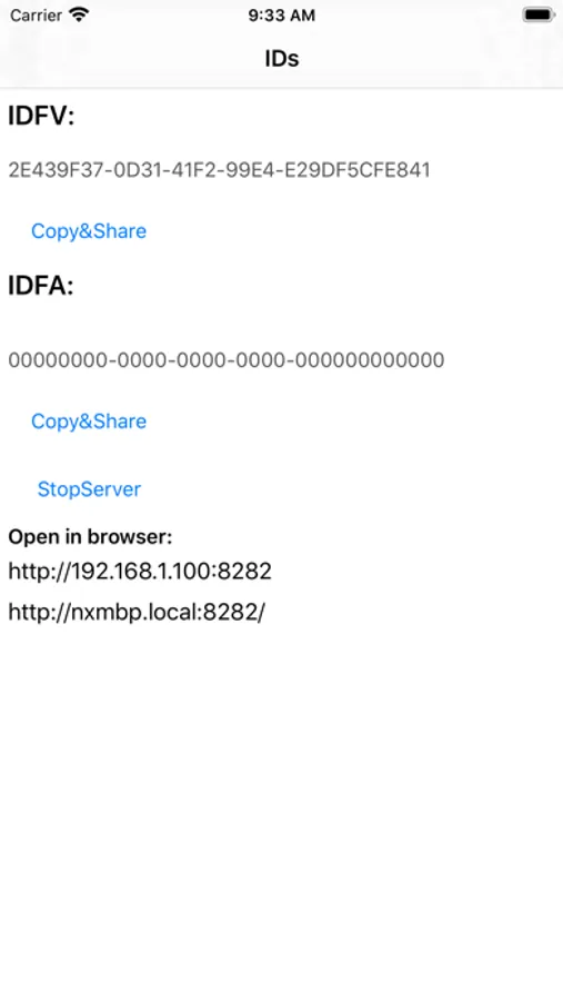 Use "DeviceIDs" to get your device IDFA uuid, copy and shared by Airdrop, SMS, Social account and a tiny build-in web server on your iPhone.
