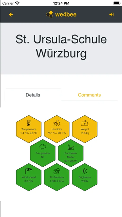 The we4bee app enables display of gathered sensor data (including e.g. temperature, humidity, air pressure, acoustics, particulate matter, wind, rain, ...) of all we4bee high-tech beehives worldwide. Share observations, follow one or more beehives, compare data histories and become part of an international research team. Help us better understand the needs of bees and other insects and make an important contribution to environmental protection.