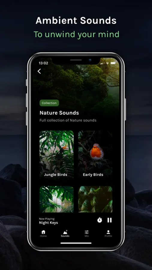 • Set a timer and let the ambient sounds send you to sleep.