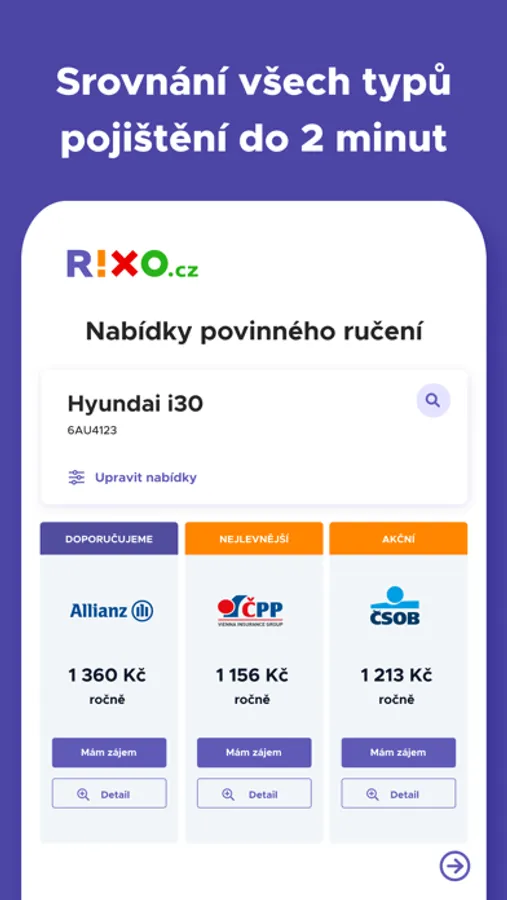 Na RIXO.cz si můžete rychle, online a výhodně srovnat nabídky pojištění, plynu a elektřiny nebo hypoték. Stačí zadat několik základních údajů a RIXO.cz vám ihned srovná nabídky od předních českých pojišťoven, dodavatelů energií nebo bank poskytujících hypotéky.