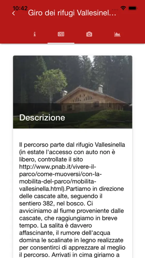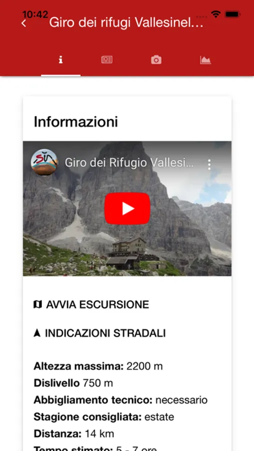 Our app gives road indications to reach the starting point of the different paths (when possible, as in some cases the start is not reachable by car) and it allows to see your position on the map in relation to the path we propose.