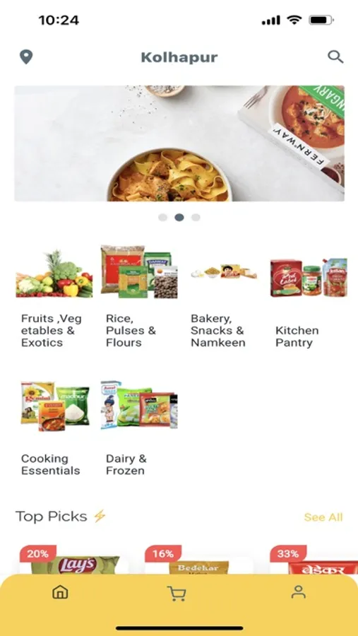 QwickPick is Kolhapur’s leading online supermarket shopping app, trusted by many happy customers and counting! Shop from a vast range of 500+ products including farm-fresh fruits and vegetables, groceries, kitchen essentials/staples, organic products & more at the best prices. Enjoy convenient online grocery shopping and home delivery at just a click of a button.