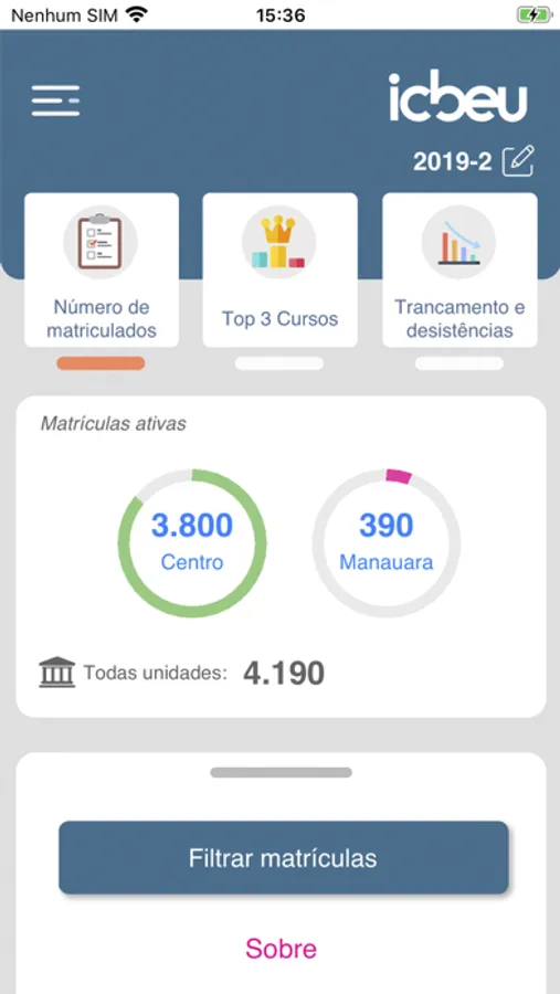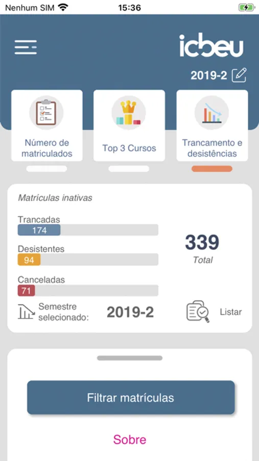 -Total de matrículas trancas, canceladas e desistentes