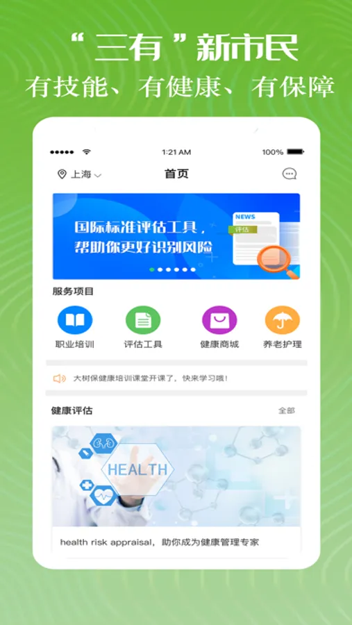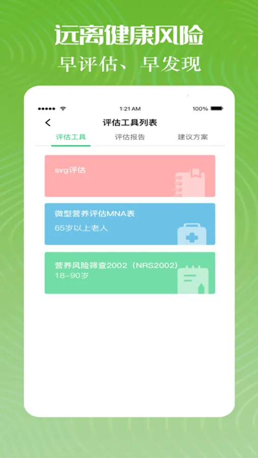 1. 健康评估:个人及家庭的健康管理,提供生活饮食建议和指导。