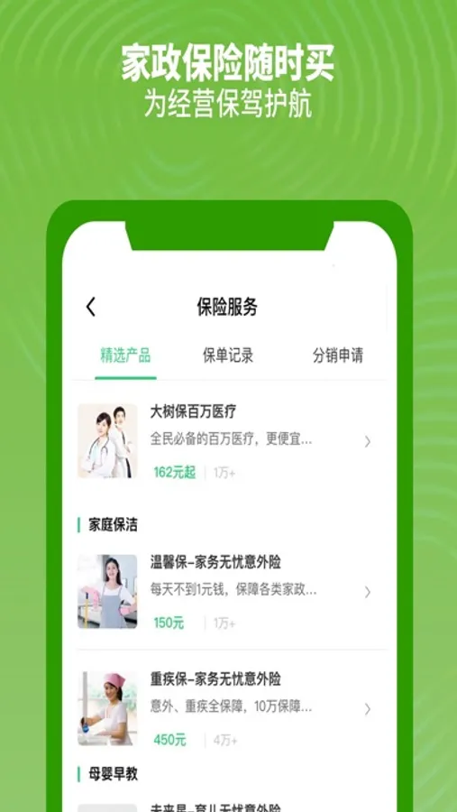 2.保障服务:专为家政服务业量身定做商业保险,购买灵活,即买即用;
