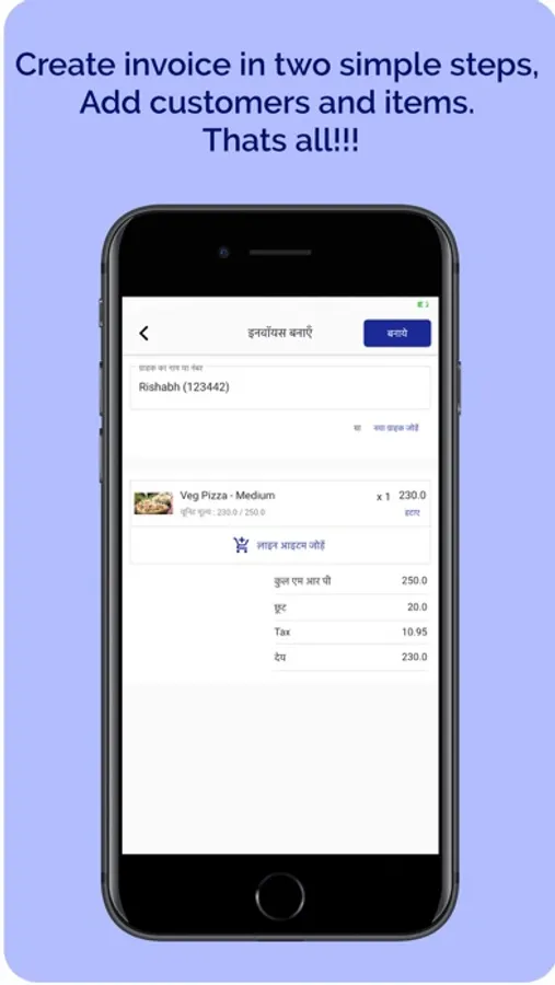 Create invoices in simple two steps, no computer knowledge is needed. Add customer and then add items you sold to the customers. Generate invoice and share via SMS or other mediums like WhatsApp