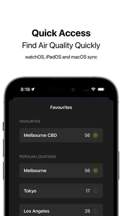 CleanSky offers global air quality tracking with data from over 11,000 stations in over 1000 cities worldwide. With cross-platform sync, you can access your air quality data and resources on all your devices, including macOS, tvOS, watchOS, and iOS devices.