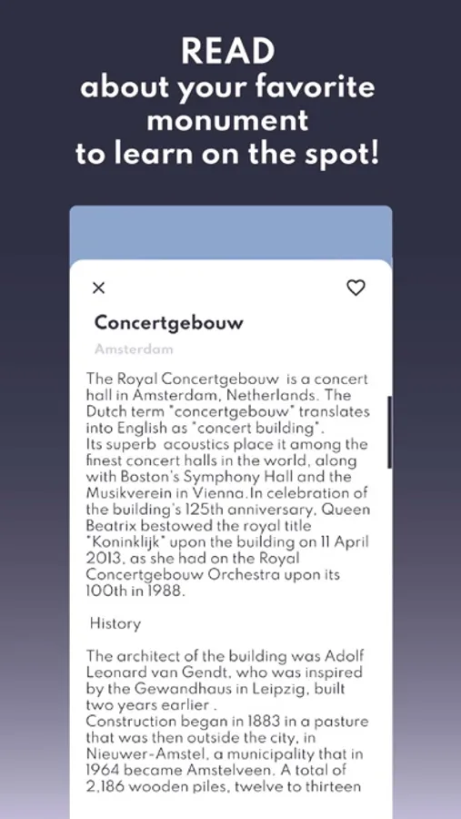Do you love traveling around the world but hate not knowing the stories behind the monuments, landmarks and historical buildings? Want to discover more about all the places you're visiting? Join all the travellers who use Meli worldwide to discover and share your favorite monuments stories.