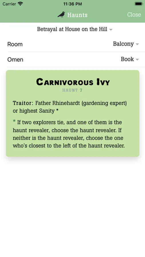 - Easily find traitor and haunt by picking an Omen and Room. Only haunt name, number, and traitor are shown - no spoilers about the haunt