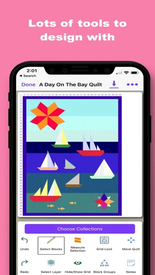 Quiltler 2 encapsulates all the joy of the original Quilting app while offering an immensely more potent toolset. While the first Quilting app aimed to help you quickly create simple box quilts, Quiltler 2 propels you towards crafting almost any quilt design you can envision, thanks to its sophisticated features. Here's a quick rundown: