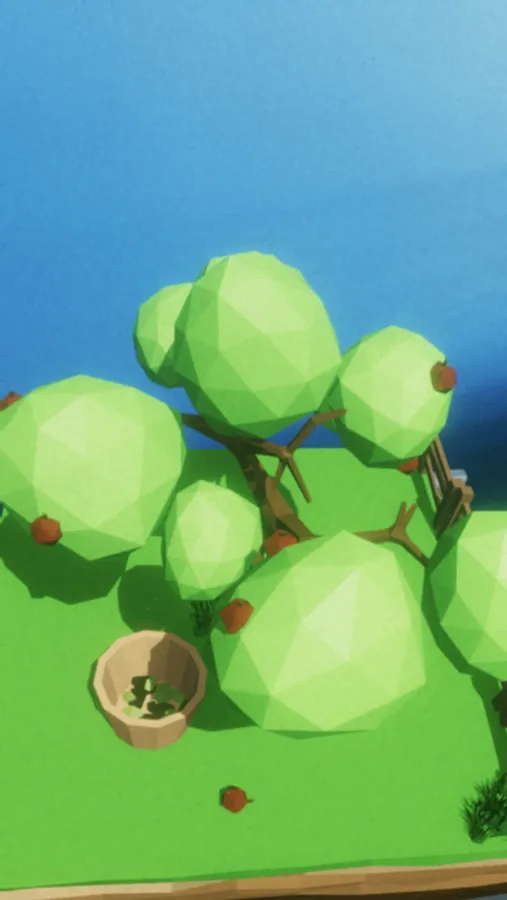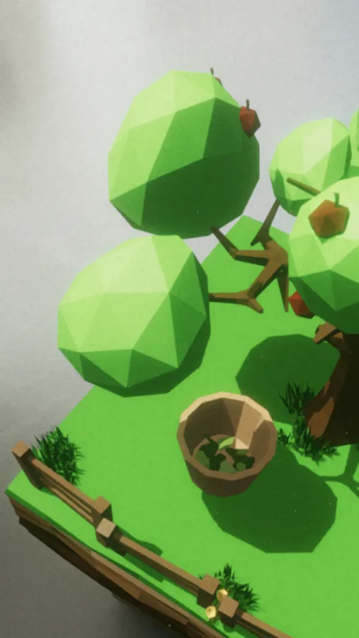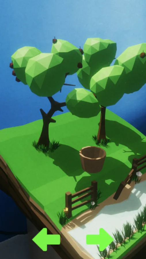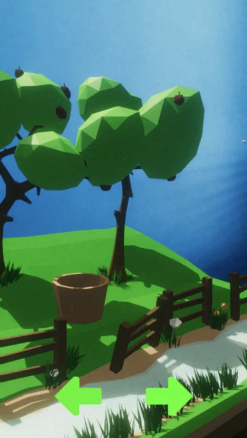 You can physically move around the scene and even peer into the scene to find all the fruit to pick. For your convenience it's also possible to rotate the scene with onscreen buttons.