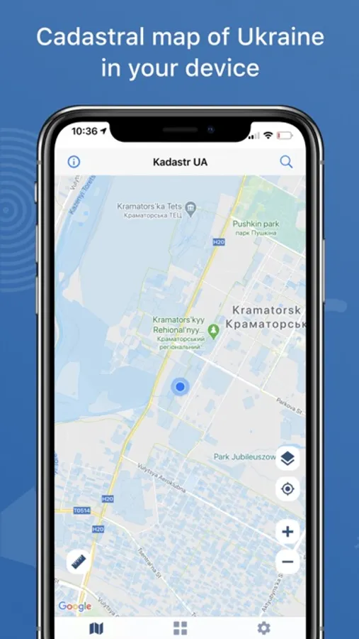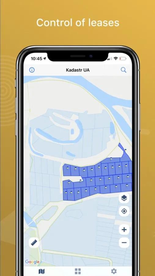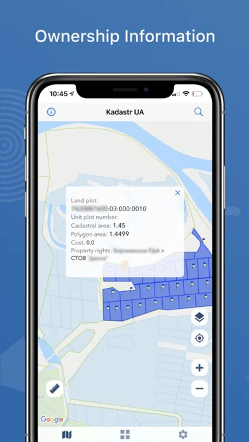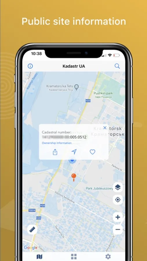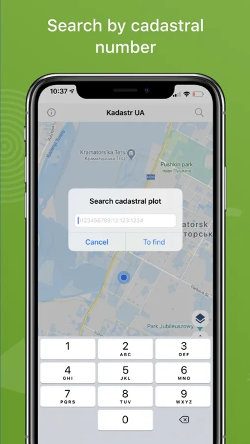 The application allows you to view the public cadastral map of Ukraine and provides additional features: