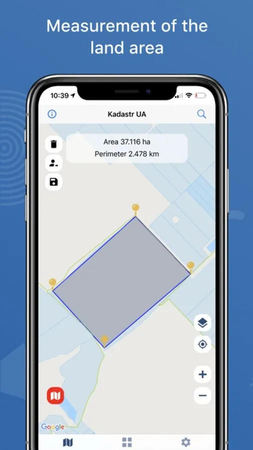 - determine the location of the land plot on the ground and get the coordinates of the selected points; for this, you need to press a finger on the border of the land plot displayed on the StateGeoCadastre;