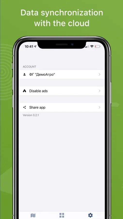 The application connects to the cloud service www.soft.farm, registered users receive additional functions for managing the land bank: