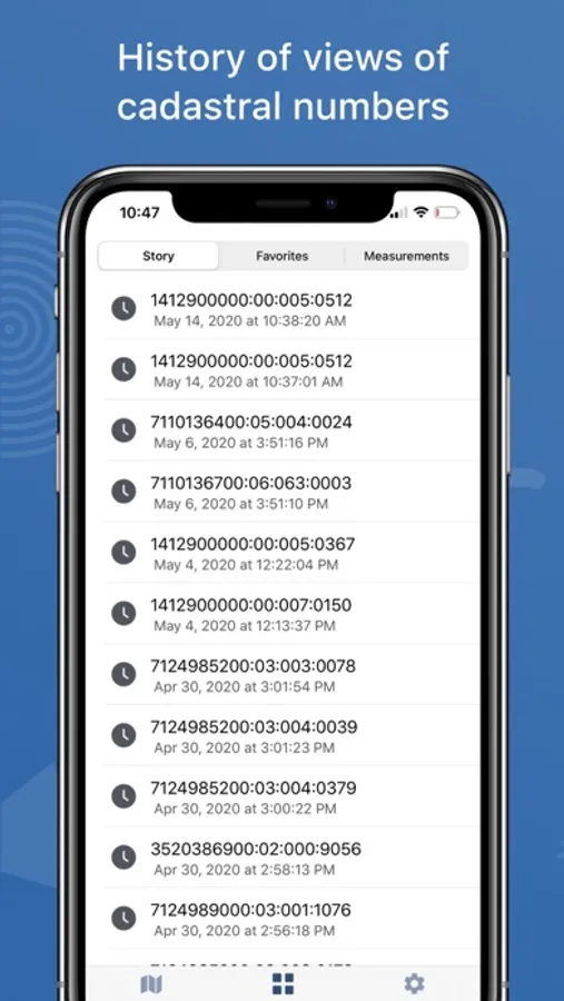 - search for a land plot by cadastral number using StateGeoCadastre data, all successful search results are stored in history on a mobile device;