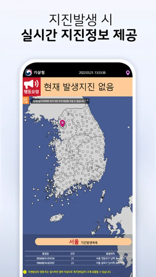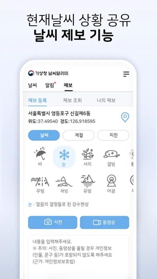 또한 지진 날씨 등 특이현상을 제보하고 공유하는 기능이 포함되어 있습니다.