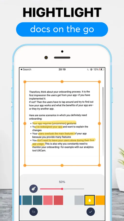 - Edit scans perspective and borders, apply filters, adjust constract, change the orientation correctly.
