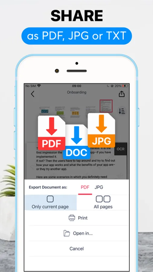 - Extract texts from photos: convert your scans into editable text with OCR (Optical Character Recognition).