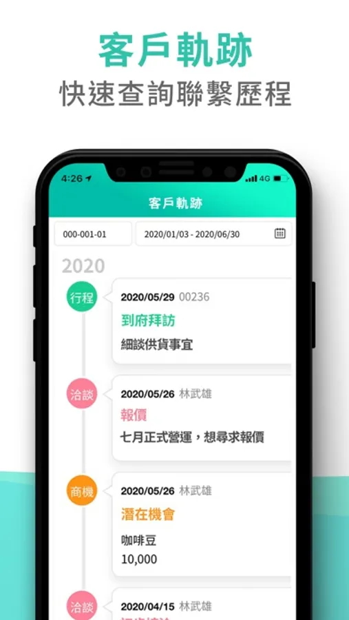 2.客戶軌跡-快速查詢客戶聯繫歷程與狀況。