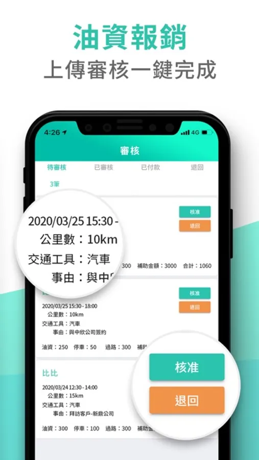 5.油資核銷-Google Map記錄里程,自動換算油資,一鍵結算報銷。