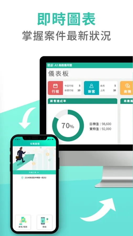 為業務設計的雲端工具,結合網頁版和 App,可跨裝置使用,提供強而有力的支援和服務。