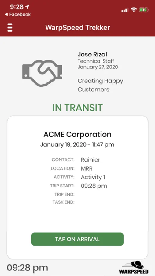 REAL-TIME GPS TRACKING. WarpSpeed enables Field Staff the ability to Time In/Out without reporting to the office and receives tasks/dispatch from Managers. It provides Managers critical job-related information such as real-time location, status and personnel info while employees are travelling and working on the field. The Command Center Map Tracker allows Managers to visually locate any of their staff on a map that gives timely information.