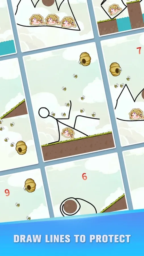 Touch the screen with your fingers, to draw a line as the wall to protect the animals from attacks by bees! Hold on 10 seconds and you will win the game. Animals are in danger now, come and save them!