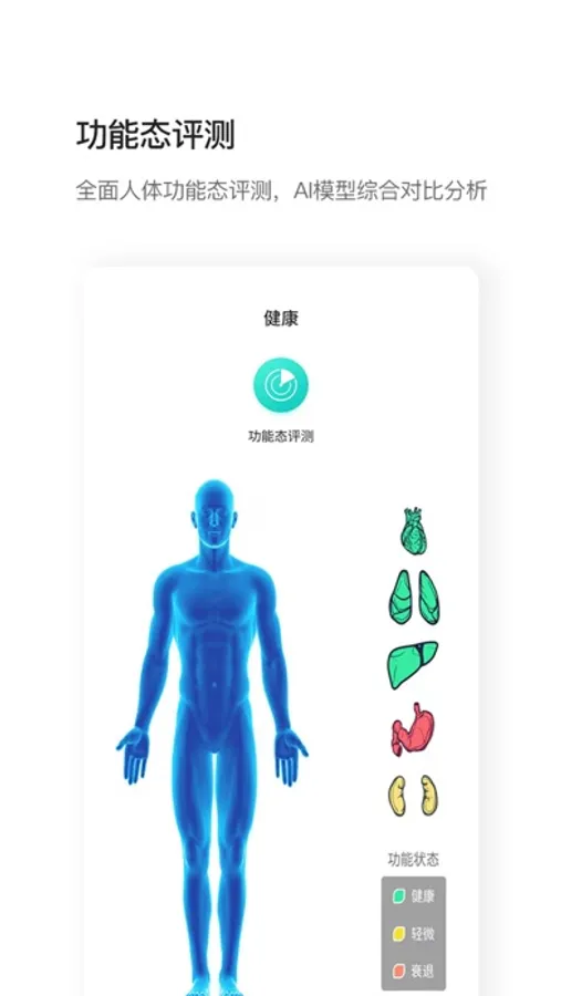 1、功能态评测:采集人体生物信息,计算分析生成报告