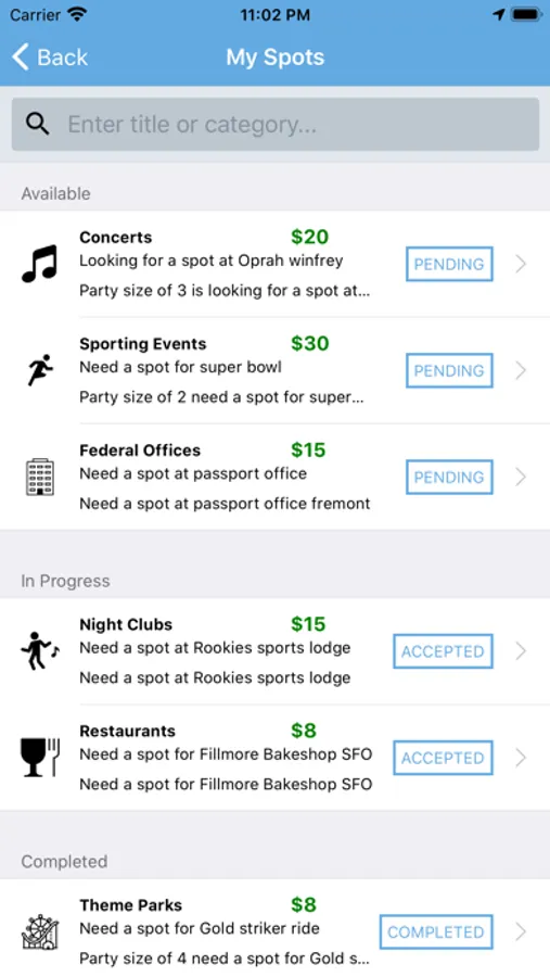 With Spotblaze you can request a spot at restaurants, theme parks, federal offices, night clubs or concerts. You are just a tap away to request a spot and it’s easy to pay with a credit card.