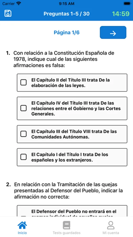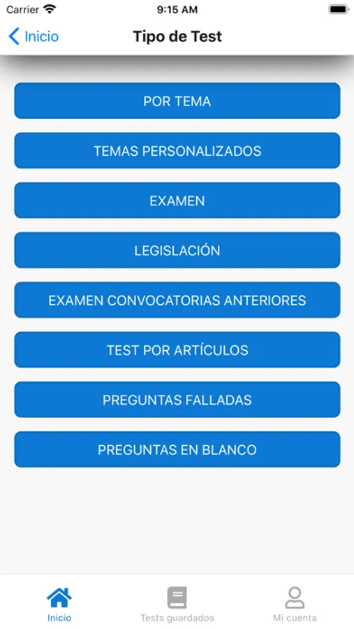 - Tests personalizados por tema, múltiples temas o por bloques.