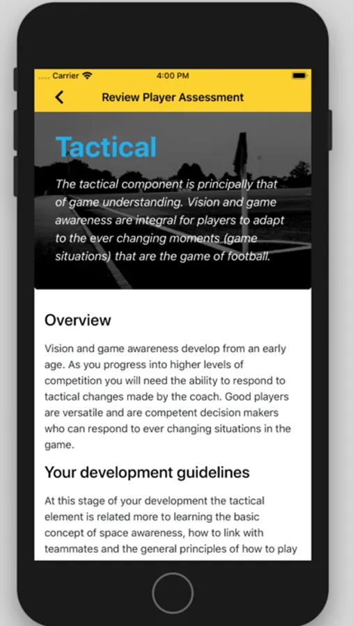 Download your Football Sessions - Player app to view your completed dynamic player assessments made by your coach using the Football Session - Coaches app.