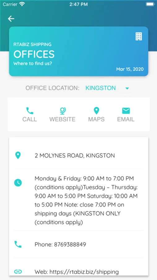 - One Click - Call, Email, Maps via Offices page