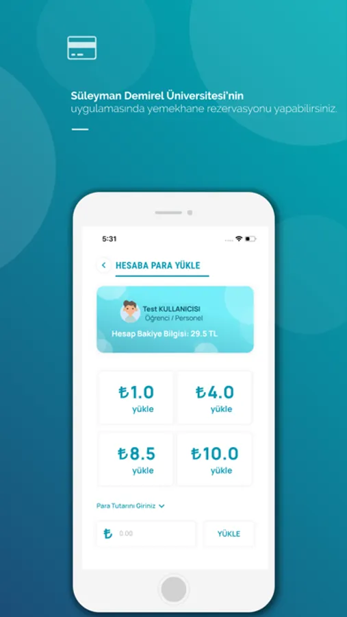 - Online Ödeme Sistemi üzerinden hesaba para yükleme, haftalık fiş alış ve askıda yemek işlemleri yapılabilir.