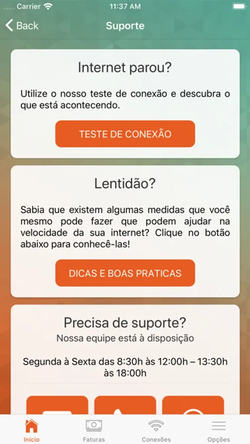 O App é um canal que visa facilitar e otimizar o tempo do cliente, proporcionando o acesso rápido a informações como: