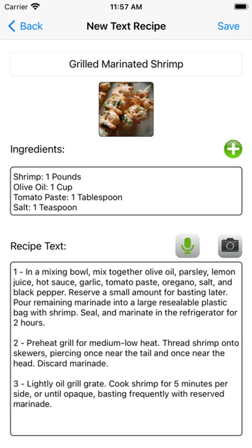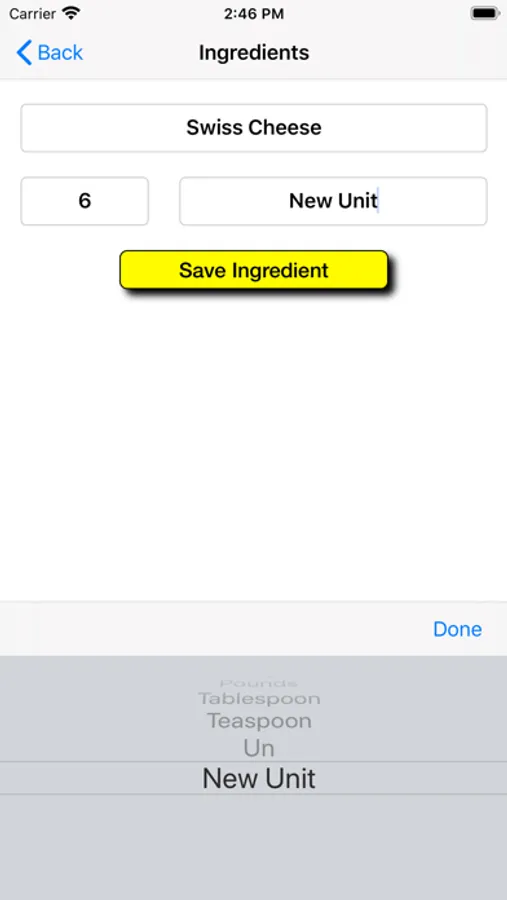 • Synchronization of recipes, ingredients and units of measure, between your mobile devices, as long as they share the same Apple ID.