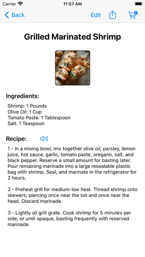 • Create and share a shopping list with the ingredients needed for your recipe.