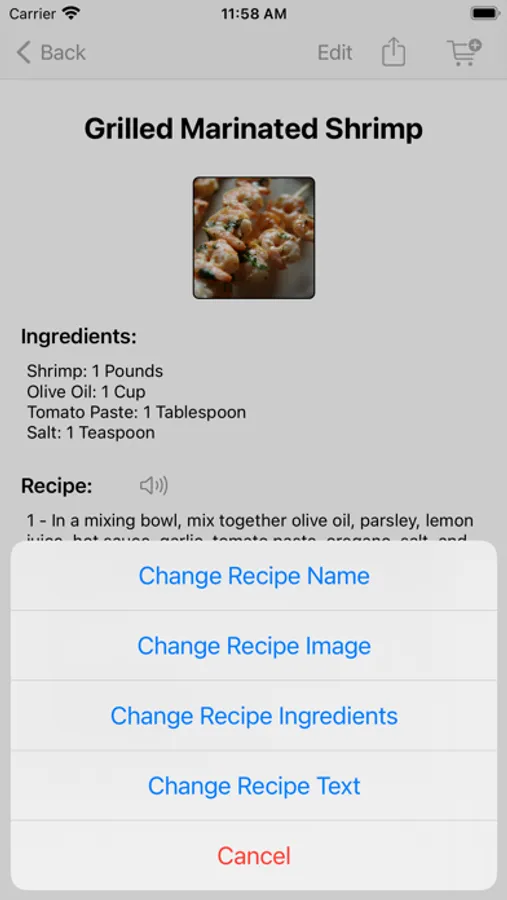 • Share your recipe, either by text message or by email.