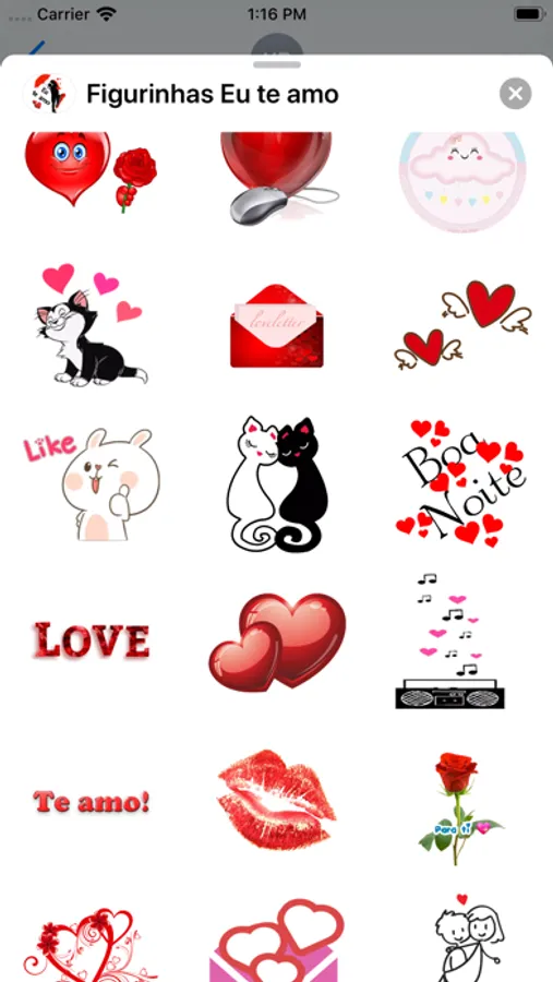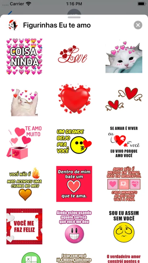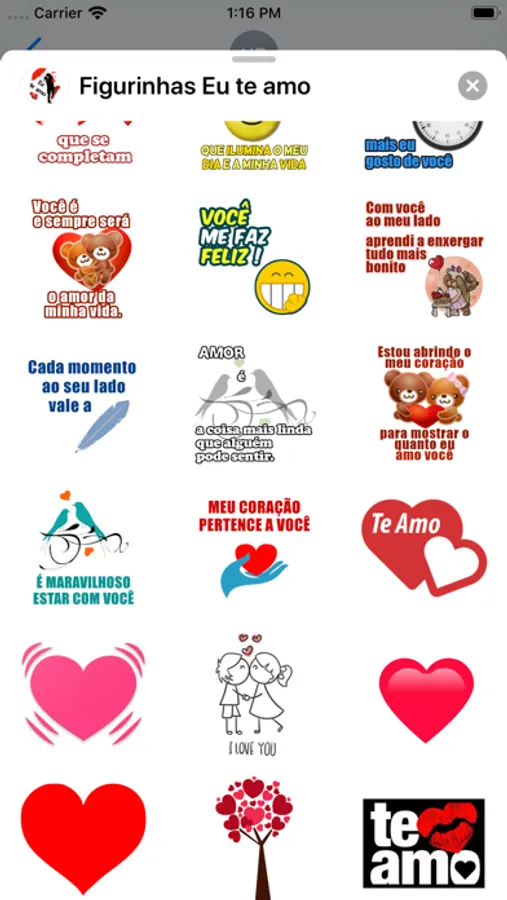 Pacotes de figurinhas (stickers) para iMessage com frases de amor